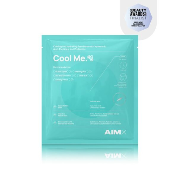 AIM X bioceliuliozinė, intensyviai raminanti veido kaukė, prisotinta baltojo gluosnio ir arbatmedžio lapų ekstraktais, peptidais, hialurono rūgštimi bei kitais augaliniais ekstraktais, priglunda tarsi antra oda, todėl visiškai nevaržo judesių.
