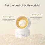 Drėkinamoji formulė, leidžianti pritaikyti odos priežiūrą pagal tai, kaip jūsų oda jaučiasi kiekvieną dieną. Dėl dvigubos tekstūros – lengvo drėkinamojo gelio ir tirštesnio drėkinamojo kremo – naudokite pridedamą mentelę, kad pagal savo poreikius galėtumėte reguliuoti kiekvienos formulės proporcijas pagal odos būklę ar metų laiką: daugiau gelio lengvesniam drėkinimui, daugiau kremo – intensyviam maitinimui. Gelinė dalis suteikia lengvą drėkinimą ir ramina odą, o kreminė dalis padeda atstatyti odos lipidų sluoksnį ir ilgiau išlaikyti drėgmę.